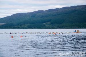 Urquhart Castle was the majestic setting for the start. Now it was just about light and we could admire it perched on an outcrop overlooking the loch. Once bags were dropped and photo shoots were done, we got into the allegedly very cold water. I was ready to go, but there seemed to be a long gap between getting in and the starting horn …