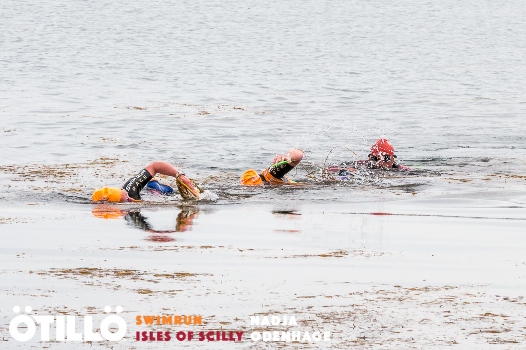 Us swimming through seaweed, with a male pair taking a sneaky draft!